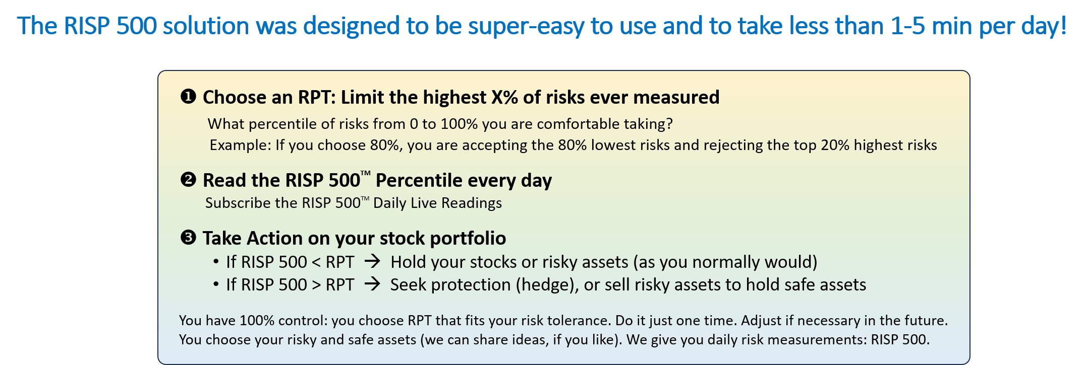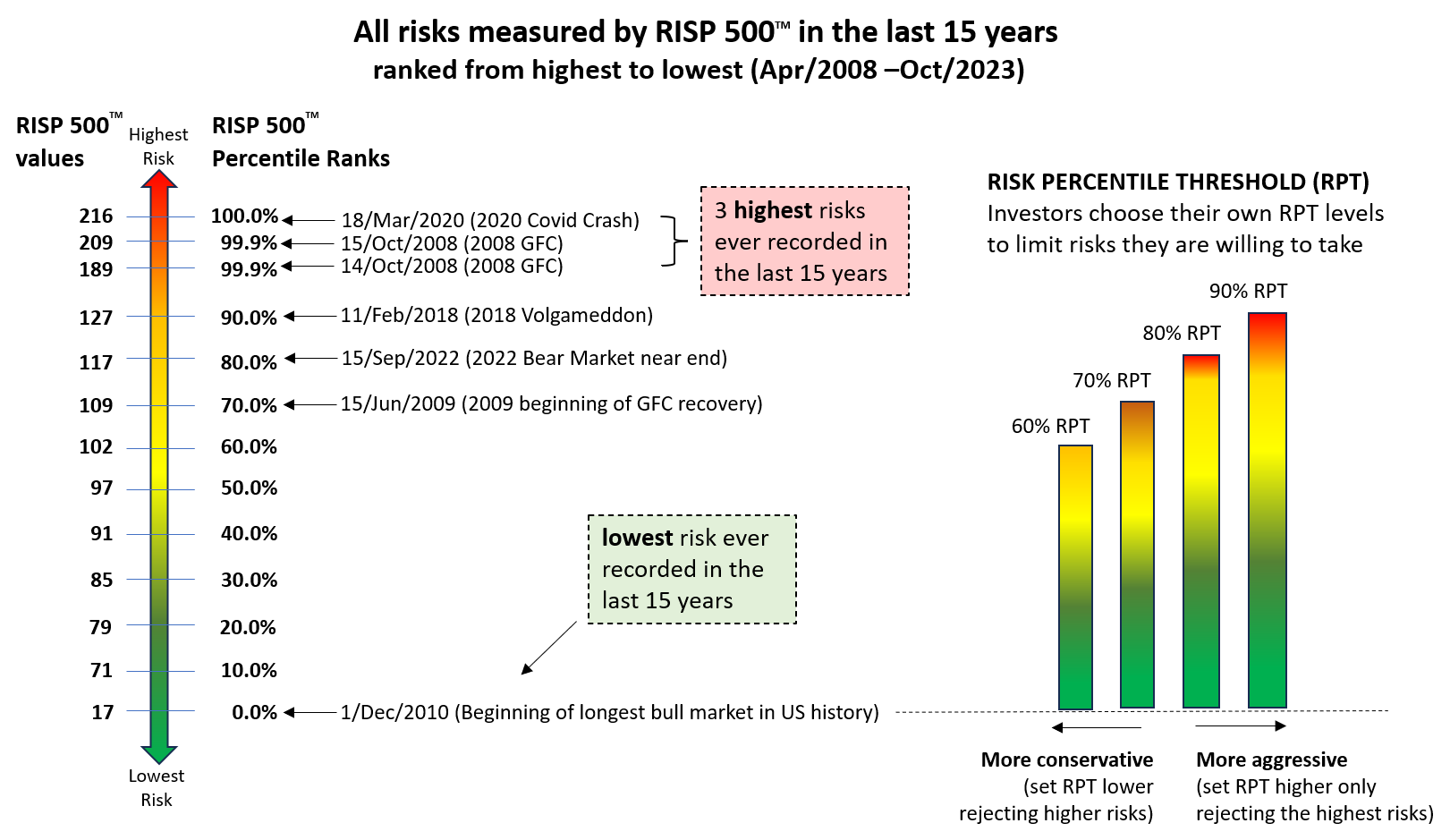 RISP 500 is a real-time risk indicator for the U.S. stock market developed by Risk Scientific LLC, a risk management research firm
