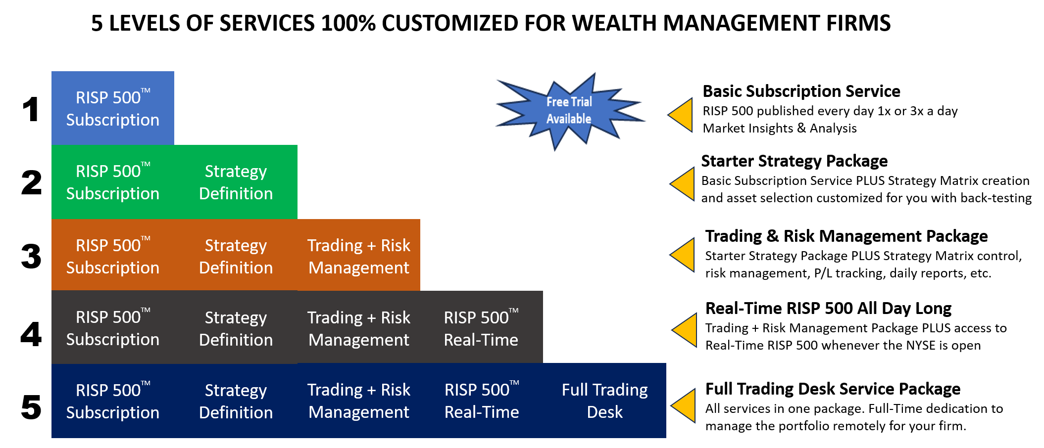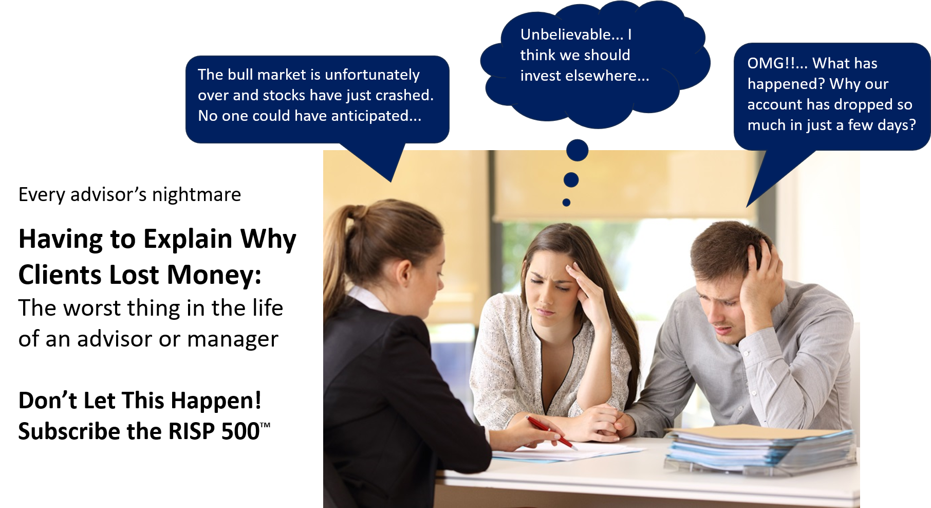 First, you can use the RISP 500 to avoid market crashes, time markets, and maximize return-risk ratios (Sharpe ratio, RoMaD, etc.) for any portfolio of assets. It's ideal for active managers, stock pickers, long-term investors, passive index investors, conservative investors, aggressive investors, day traders, swing traders, financial advisors, RIAs, CFPs, etc. The RISP 500 can help ALL investors and wealth managers!
